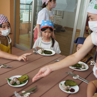 先ほど作り方を教えてもらったお菓子たちをすぐに提供できるように準備します。