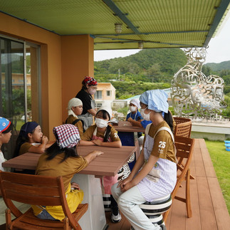 今日は、島菓子を作るだけではなく保護者の皆さんをお客様に見立てて、島らしいおもてなしをするところまでがワークショップの内容になります。