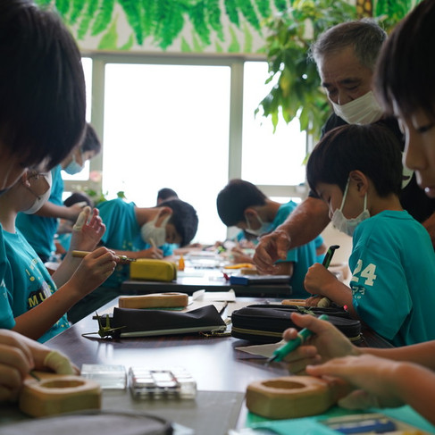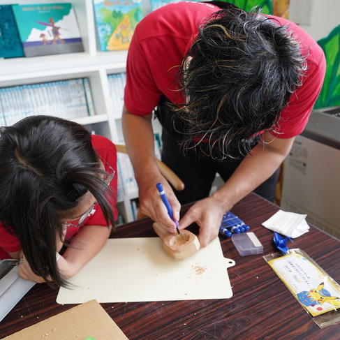 難しい彫りの作業をあきらめずにやっている子供たち。