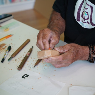 試行錯誤して、彫りたいデザインを木に写していきます。