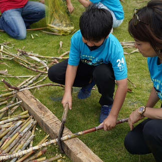 さてさて!ワークショップが終わった後は有志で、サトウキビの植付けを行いました。