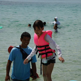 かっこいいサーファーのお兄さん、お姉さんが志塾生をサポートしてくださいます。