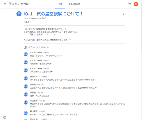 今宵の授業はここで終了。またみんなで星を見つけに行きたいね。