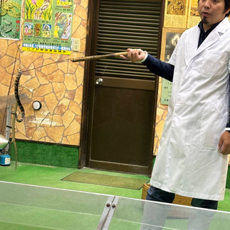 ハブの習性や万が一嚙まれた時の対処法などを本物のハブを使って面白おかしく話してくださいます。