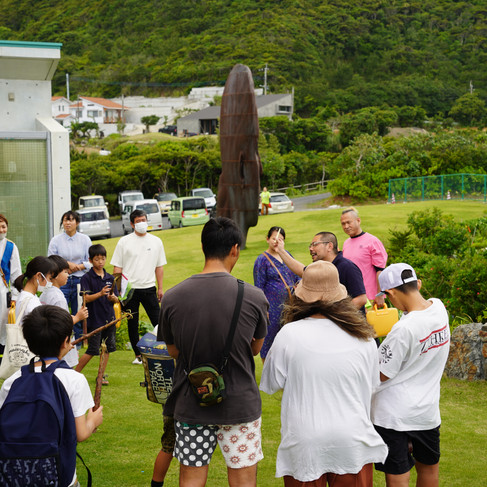 なんと、この放浪館の壁画を描かれた大宮エリーさんがたまたま奄美にご滞在中でしたのでぜひ、子供たちに一言頂きたいと思いご挨拶をお願いいたしました。